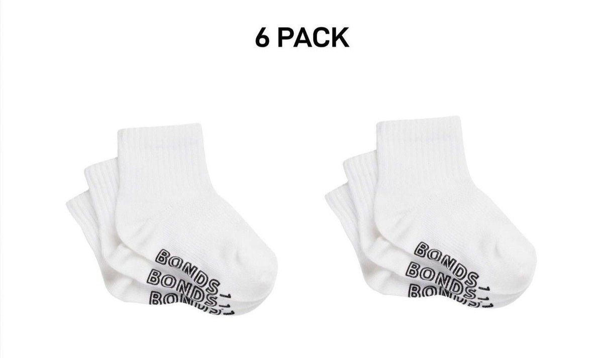 Bonds Baby Lightweight Quarter Crew Sock Comfy Cotton Grip Soles 6 Pack RXU83N