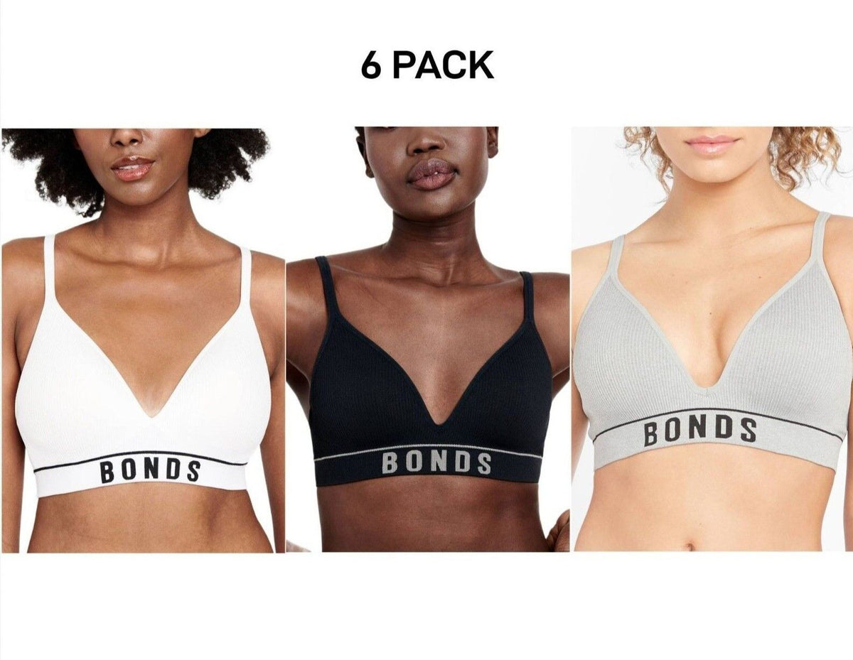 Bonds Womens Retro Rib Wirefree Tee Bra Comfortable & Stretchable 6 Pack YXF7Y