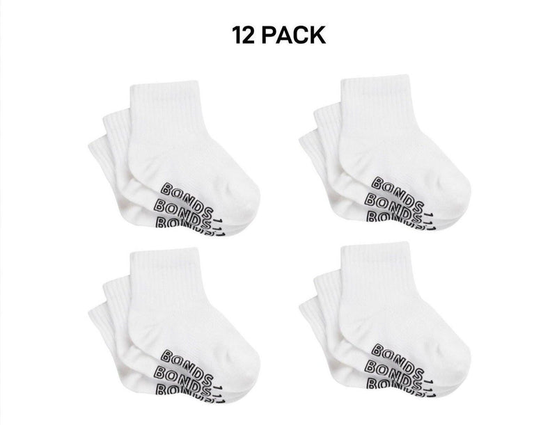 Bonds Baby Lightweight Quarter Crew Sock Comfy Cotton Grip Soles 12 Pack RXU83N