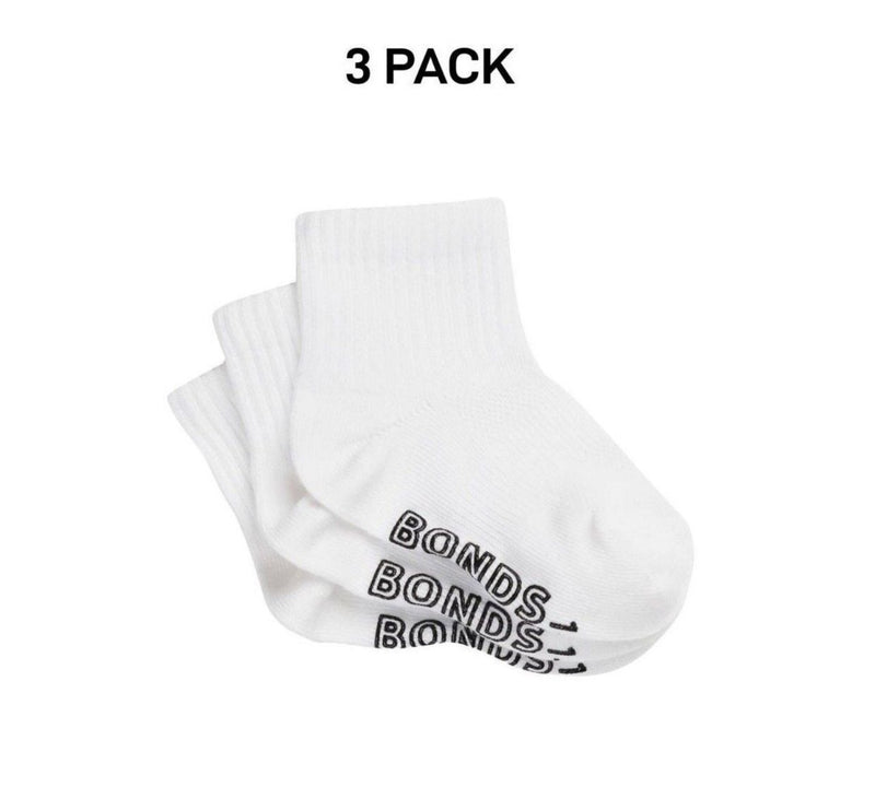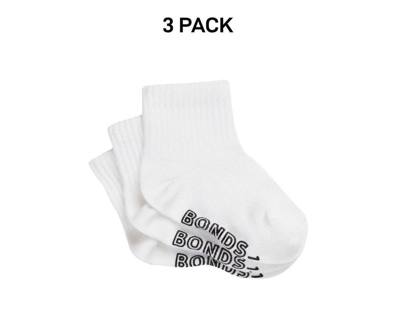 Bonds Baby Lightweight Quarter Crew Sock Comfy Cotton Grip Soles 3 Pack RXU83N