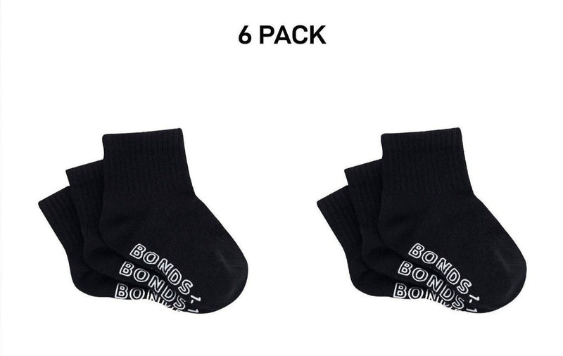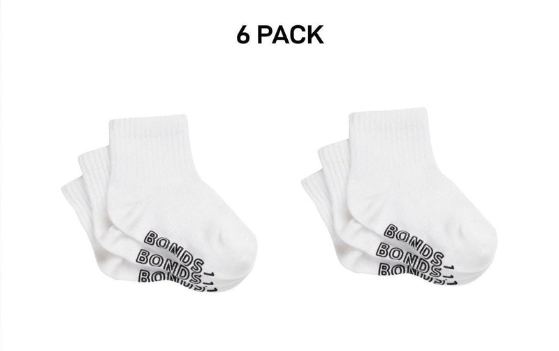 Bonds Baby Lightweight Quarter Crew Sock Comfy Cotton Grip Soles 6 Pack RXU83N