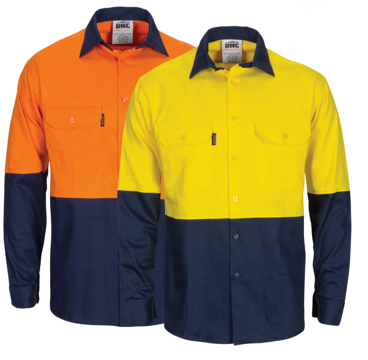 SALE DNC Mens Safety Hi Vis Work Two Tone Comfy Two tone Cotton CSR RT LS 3966