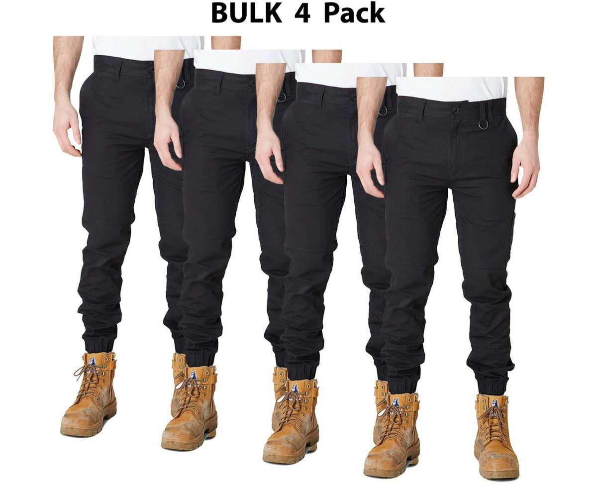Mens Elwood Work Cuffed Pants Stretch Canvas 4 Pack Tradie Phone Pocket EWD103