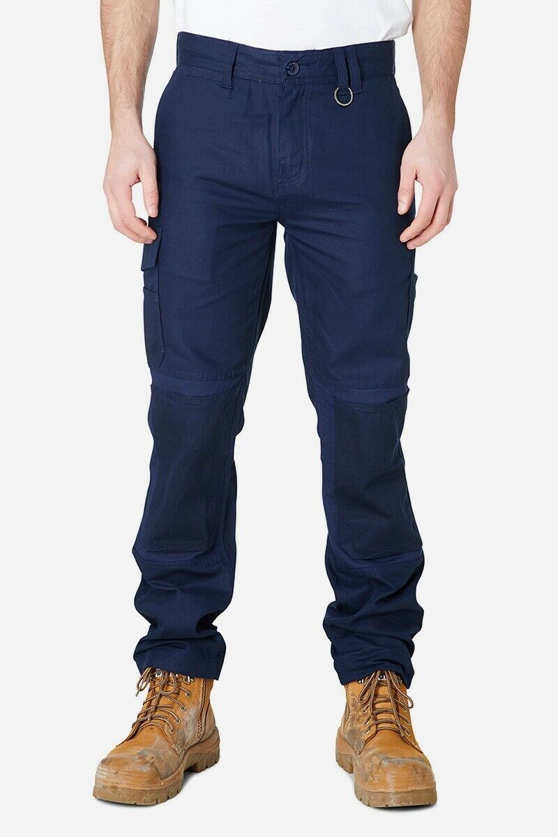 Mens Elwood Work Utility Pants Knee Panels Canvas Tradie Phone Pocket EWD101