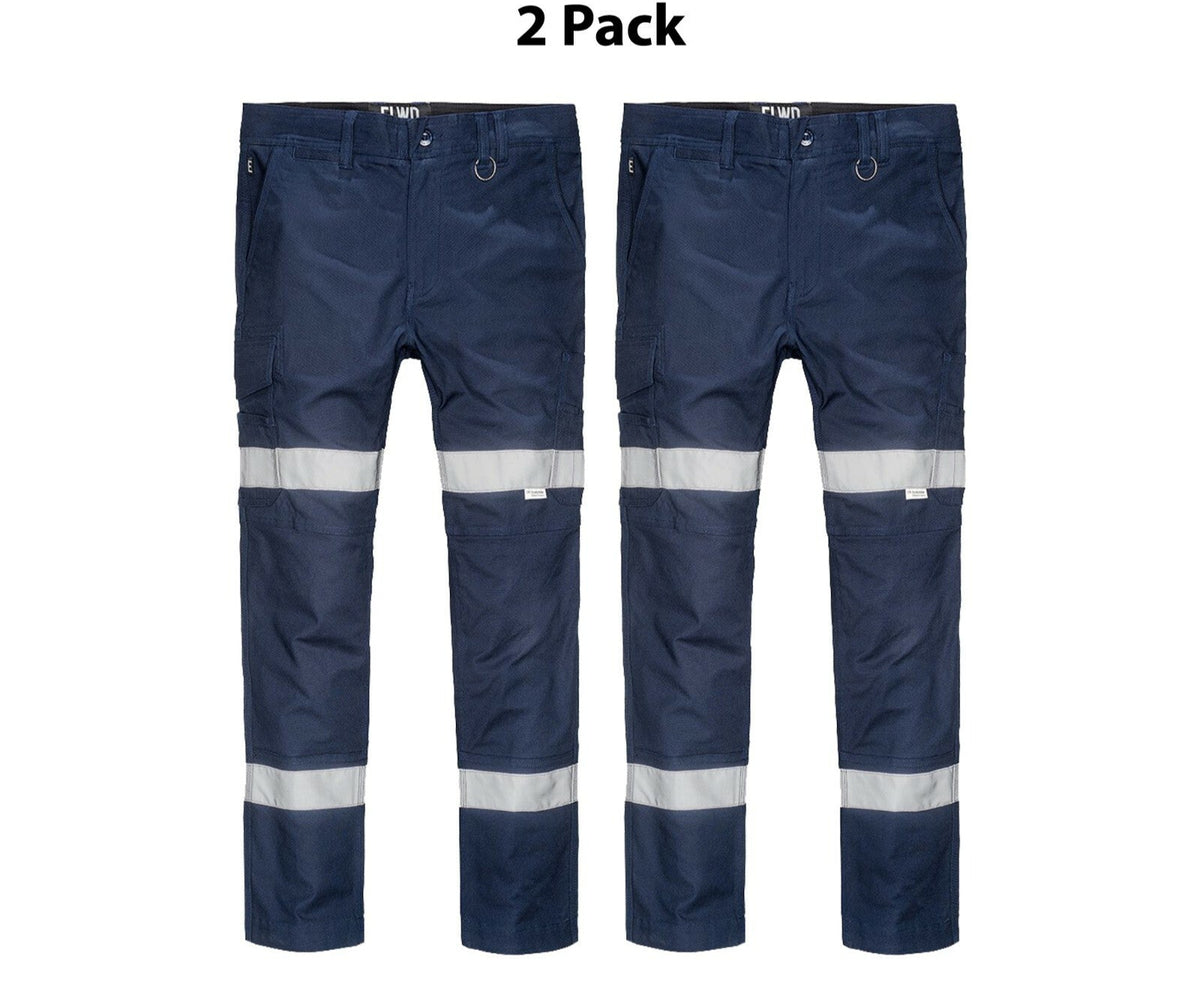 Mens Elwood Work Road Pants 2 Pk Stretch Canvas Phone Pocket Taped Safety EWD106