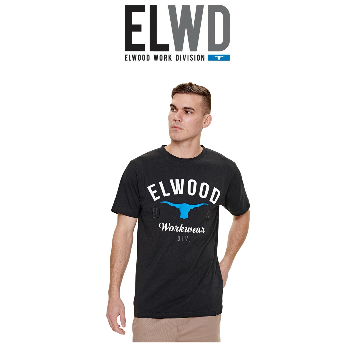 SALE Elwood Mens Bulls Horns Tee Cotton Short Sleeve Stretch T-Shirt Work EWD812