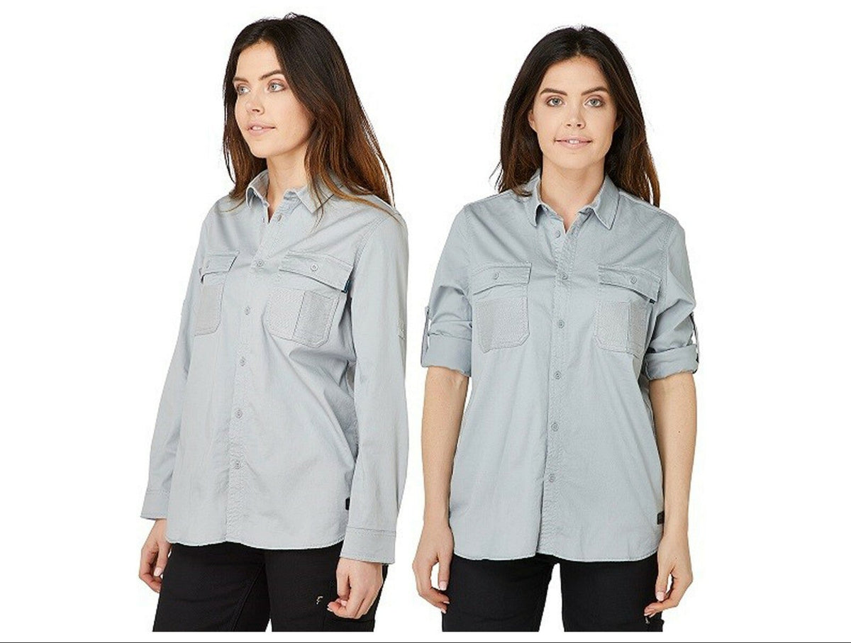 Womans Elwood Workwear Work Utility Stretch Twill Shirt Roll Up Sleeves EWD701