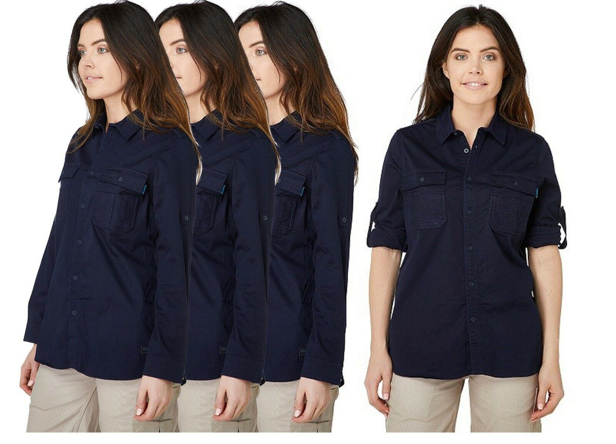 Womans Elwood Workwear 4 Pack Utility Stretch Twill Shirt Roll Up Sleeves EWD701