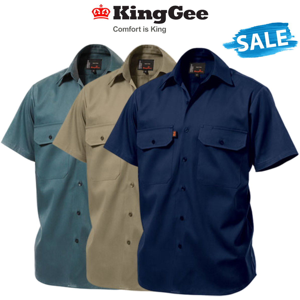 SALE KingGee Mens Open Front Drill Shirt S/S Reinforced Work Cotton Comfy K04030