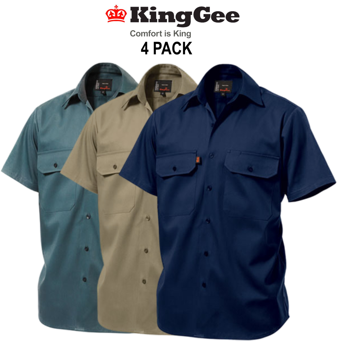 KingGee 4 Pack Closed Front Drill Shirt Reinforced Stitching Tough Work K04020