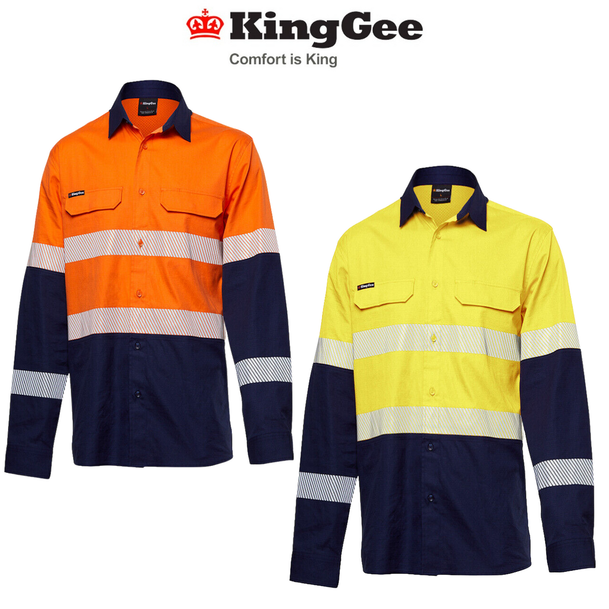 KingGee Mens Hi-Vis Spliced Drill Shirt Long Sleeve Work Taped Safety K54315