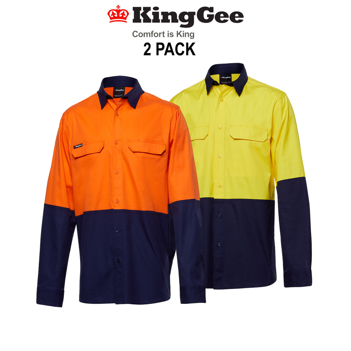 KingGee 2 Pack Workcool 2 Hi-Vis Shirt Long Sleeve Button Up Workwear K54870