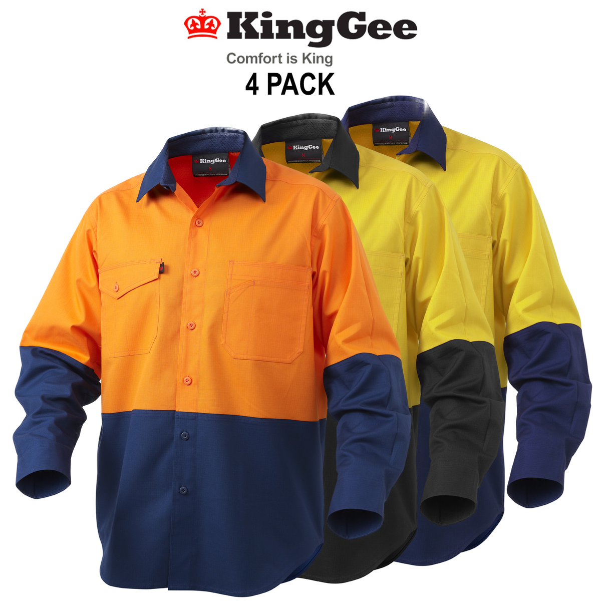 KingGee 4 Pack Workcool 2 Hi-Vis Shirt Long Sleeve Button Up Workwear K54870