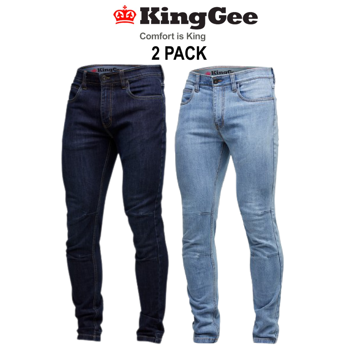 KingGee 2 Pack Urban Coolmax Denim Slim Jeans Cotton Comfortable Gusset K13006