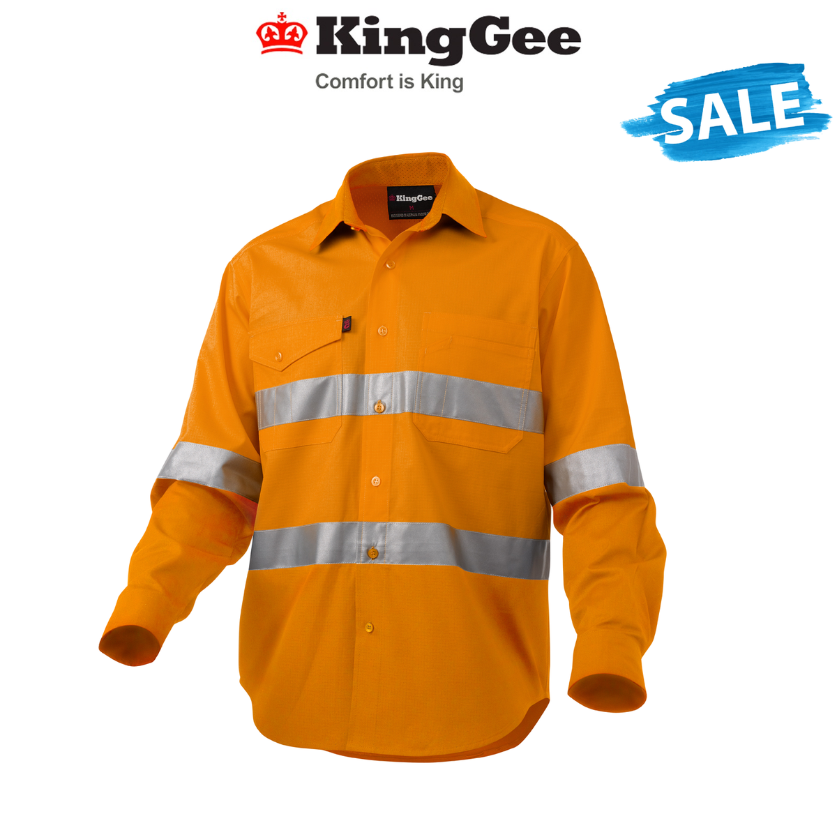 SALE KingGee Workcool Hi-Vis Taped Shirt Long Sleeve Work Lightweight K54880