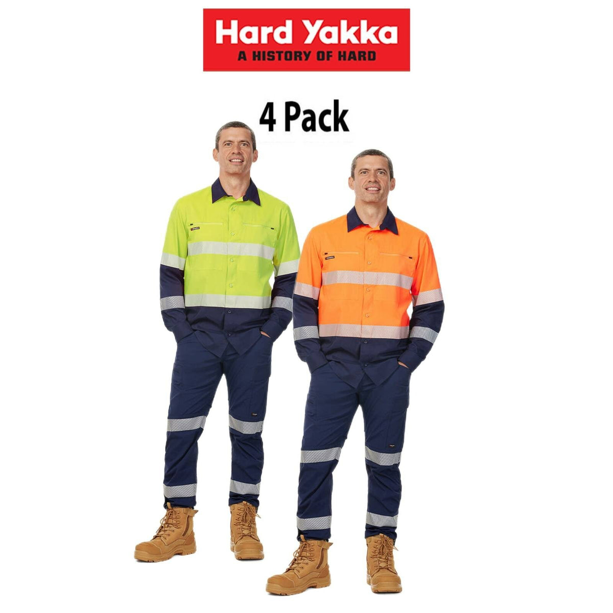KingGee Mens 4 Pack Drycool Hi Vis Taped Stretch Work Shirt Long Sleeve K54037