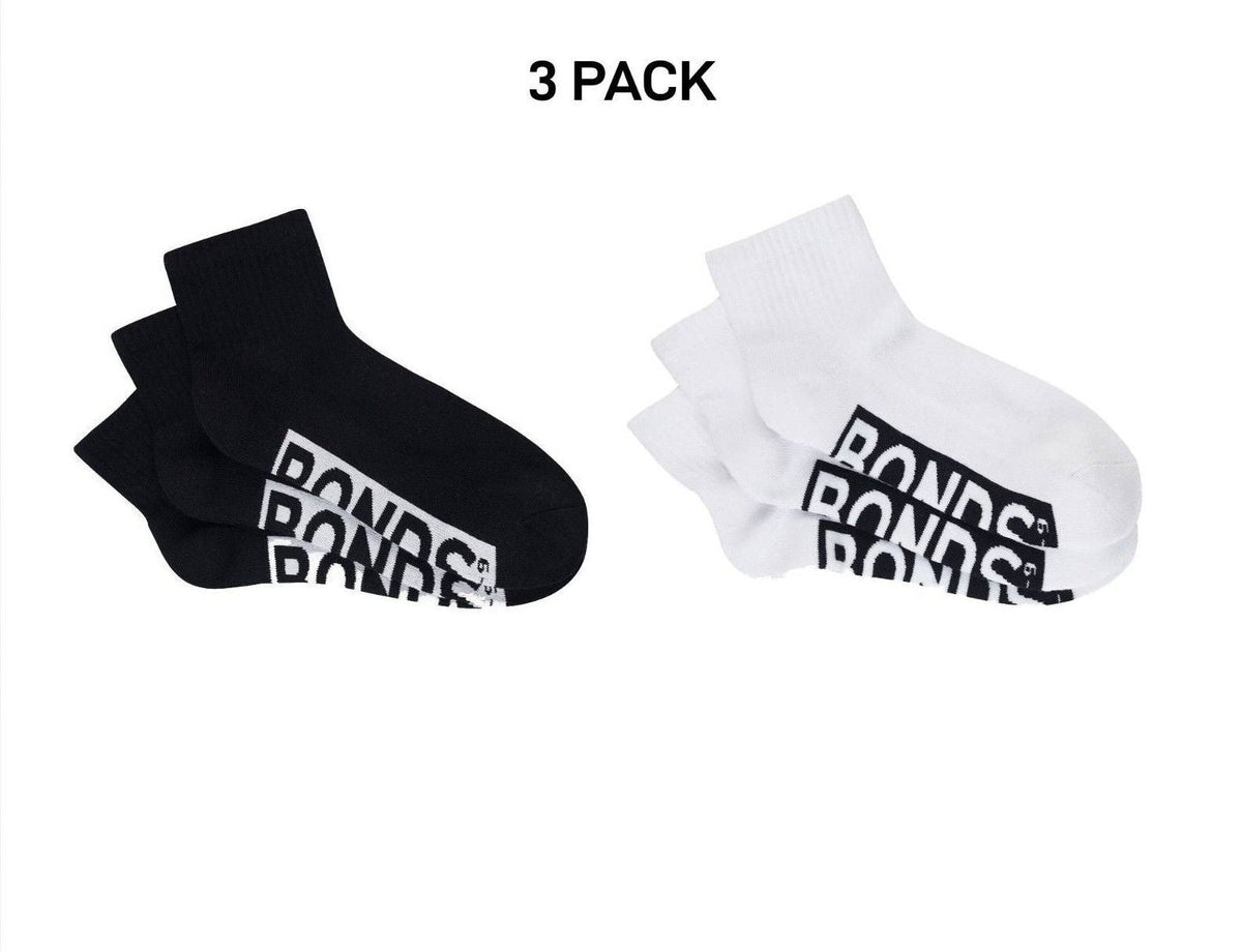 Bonds Mens Logo Cushioned Quarter Crew Socks Smooth Toe Seams 3 Pack SXN93N