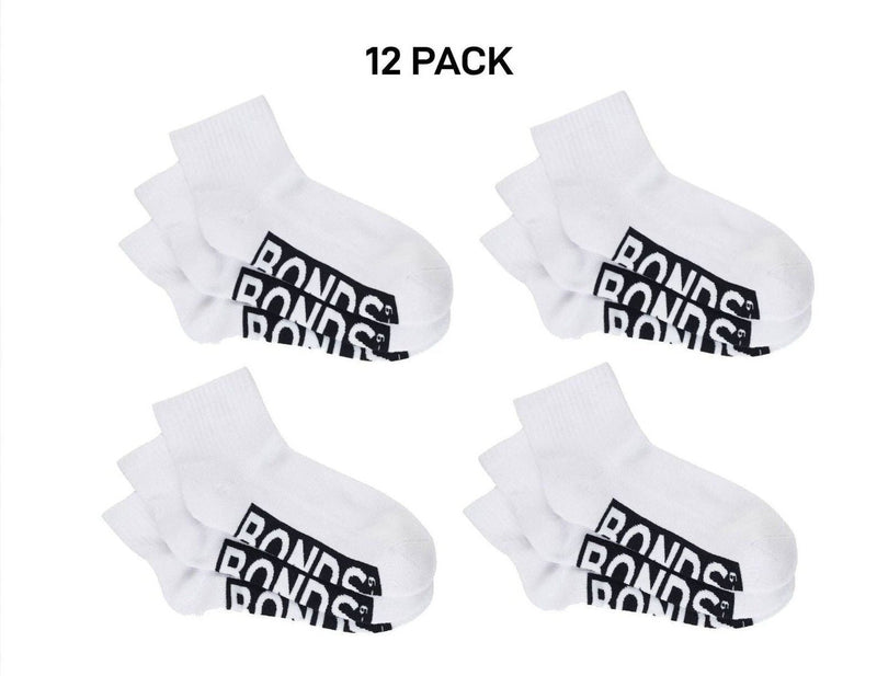 Bonds Mens Logo Cushioned Quarter Crew Socks Smooth Toe Seams 12 Pack SXN93N