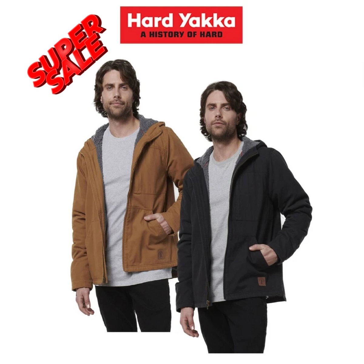 Super Sale! Hard Yakka Mens Heritage Canvas Hooded Insulated Zip Jacket Y06744
