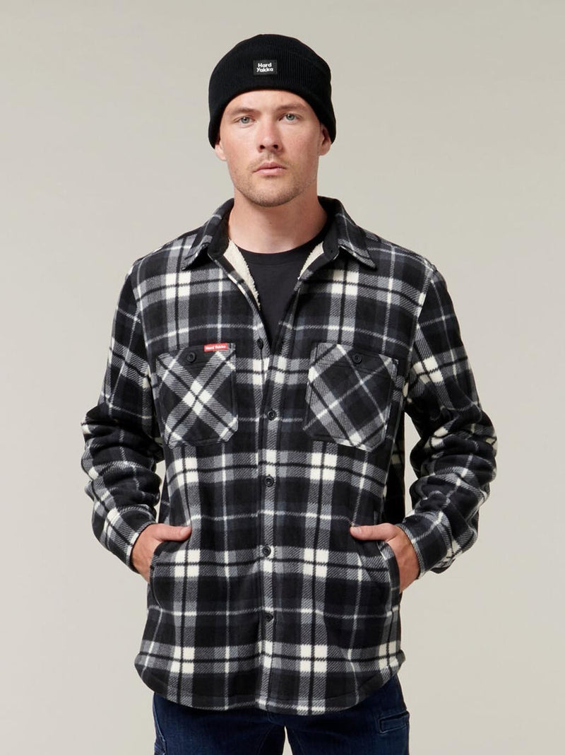 Super Sale! HARD YAKKA Men Sherpa Henley Contrast Warm Jacket Work Y19488