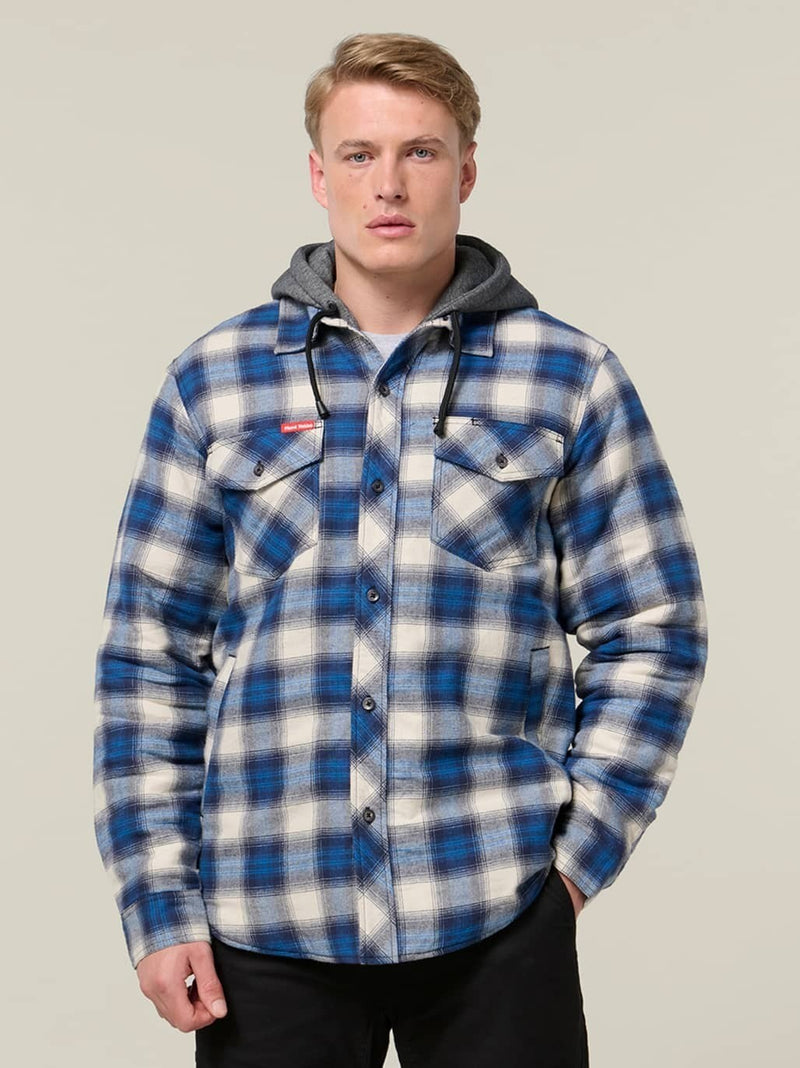 Super Sale! Hard Yakka Heritage Quilted Flannel Hooded Shacket Insulated Y06690