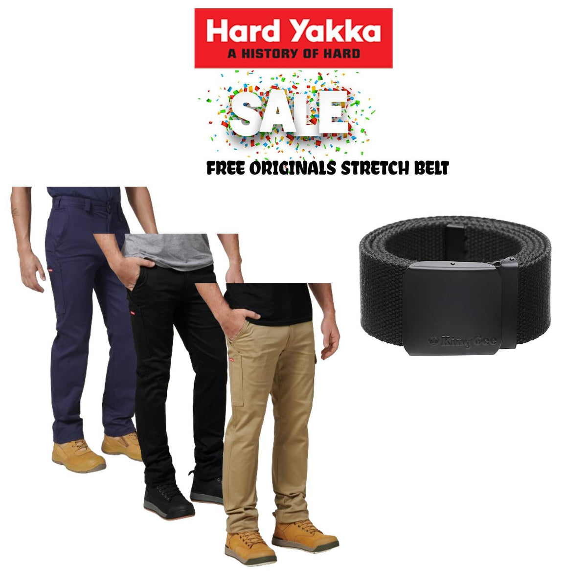 SUPER SALE! Hard Yakka Mens Core Basic Cargo Work Pants FREE Stretch Belt Y02597