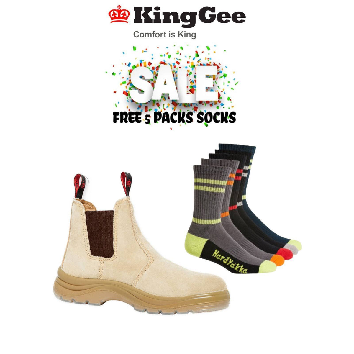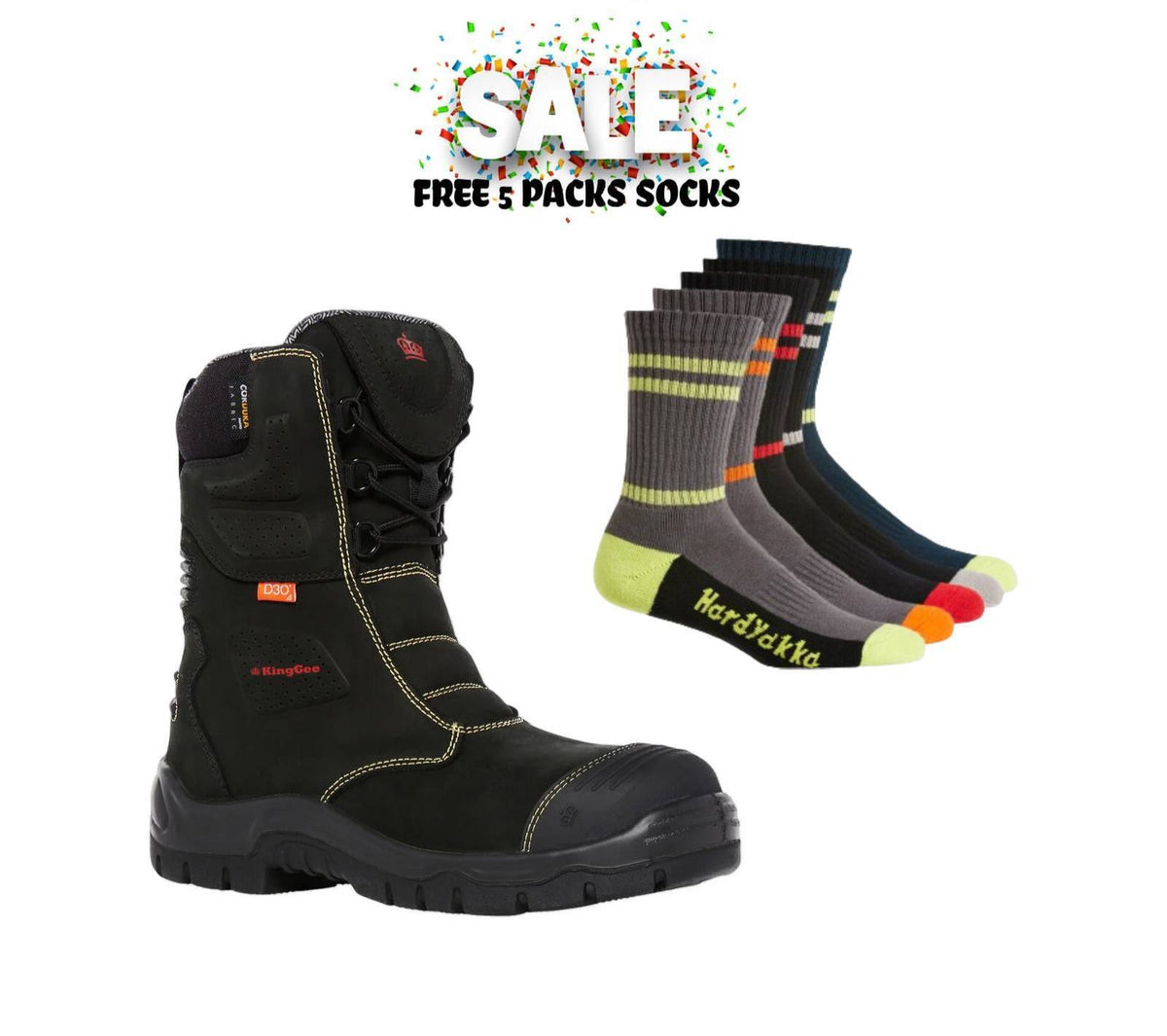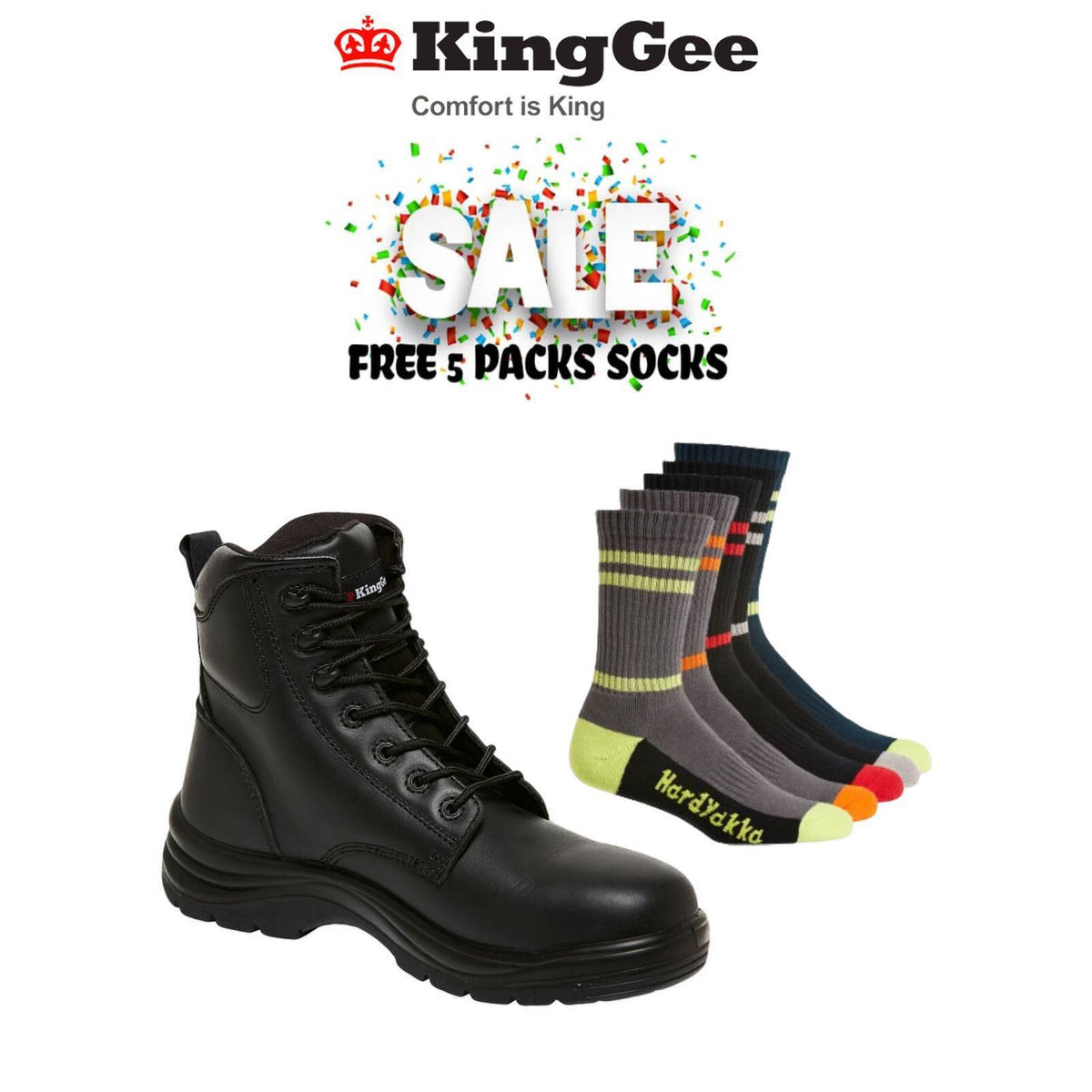 SUPER SALE! KingGee Mens Flinders Steel Safety Work Boots FREE 5Pack Sock K25500