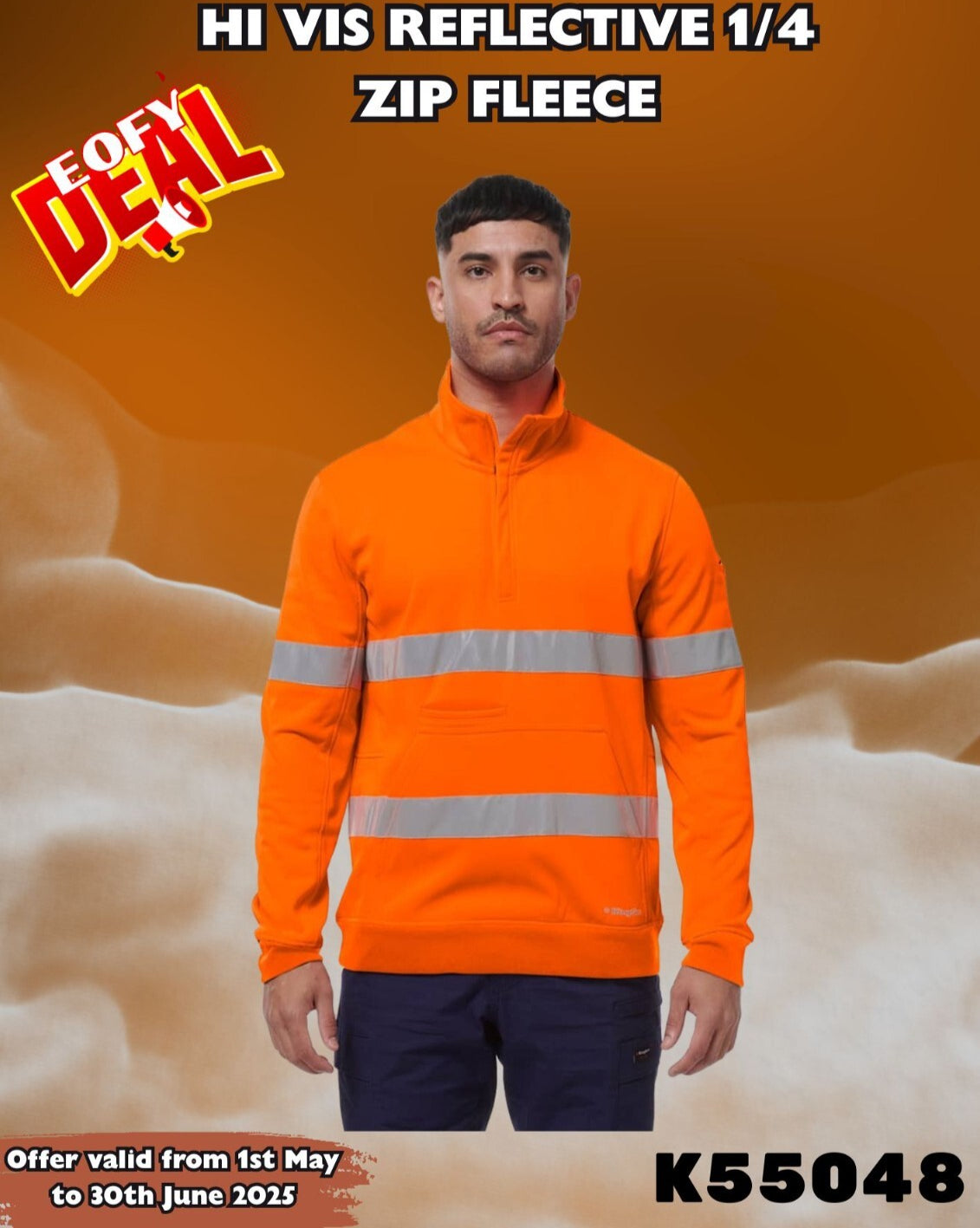 Super Sale OEFY KINGGEE Mens Hi Vis Reflective 1/4 Zip Fleece Workwear K55048
