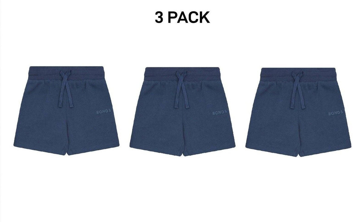 Bonds Kids Tech Sweats Short Lightweight Soft Rib Waistband Sporty 3 Pack KVQPK