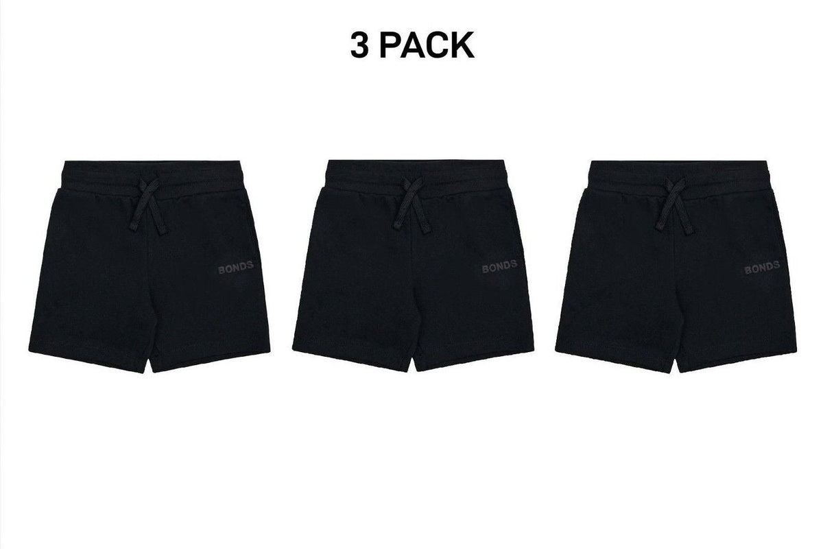 Bonds Kids Tech Sweats Short Lightweight Soft Rib Waistband Sporty 3 Pack KVQPK