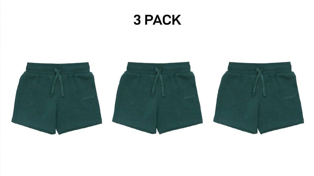 Bonds Kids Tech Sweats Short Lightweight Soft Rib Waistband Sporty 3 Pack KVQPK